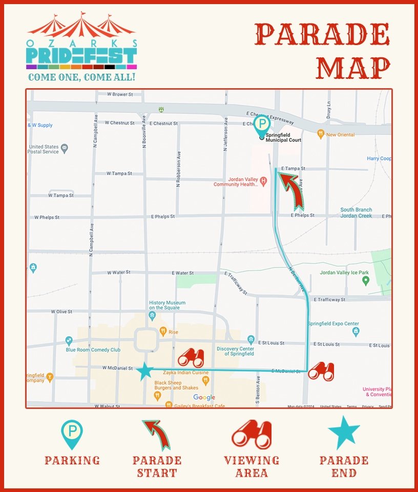 Ozarks Pridefest 2026 “Come One, Come All” will be on Saturday, June 13, 2026, on the square in downtown Springfield. Join us for a day of celebrating the diversity and love that makes our LGBTQIA+ family so beautiful!